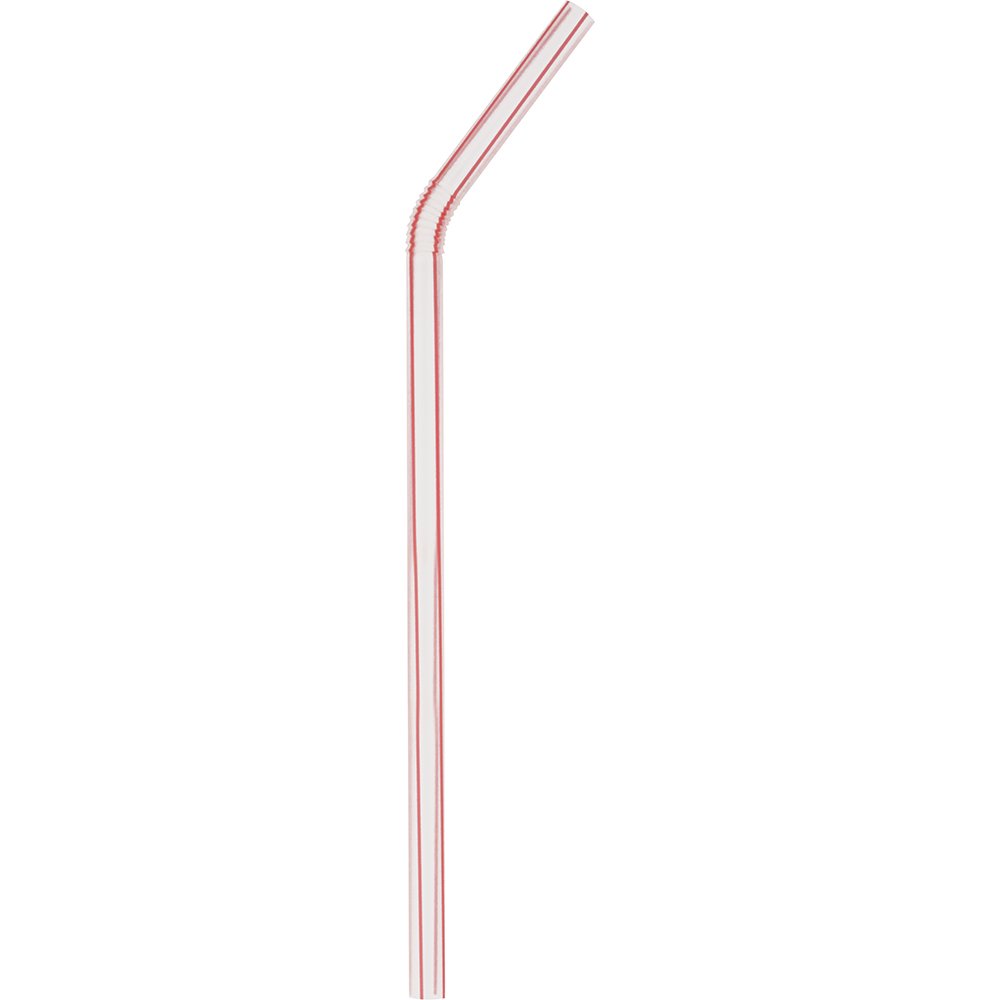 Canudo Flexível Shake 8mm Sachê Individual Transparente c/ Listra Vermelha 100 unidades