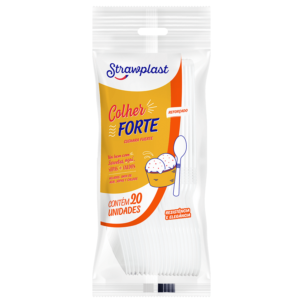 A Colher Forte Strawplast é fabricada com PS (Poliestireno)