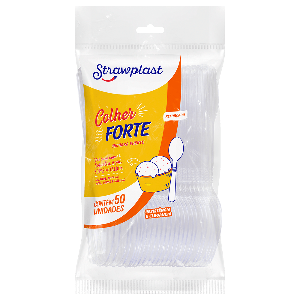 A Colher Forte Strawplast é fabricada com PS (Poliestireno)