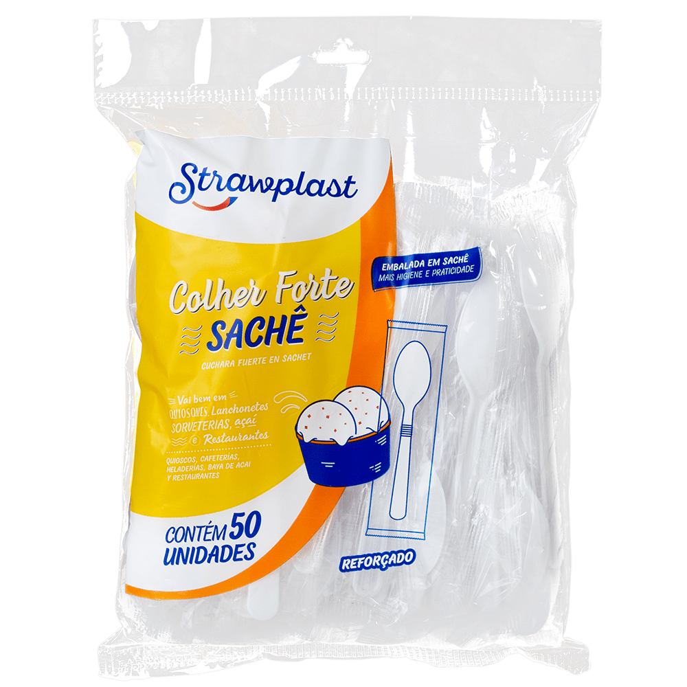 A Colher Forte Strawplast é fabricada com PS (Poliestireno)