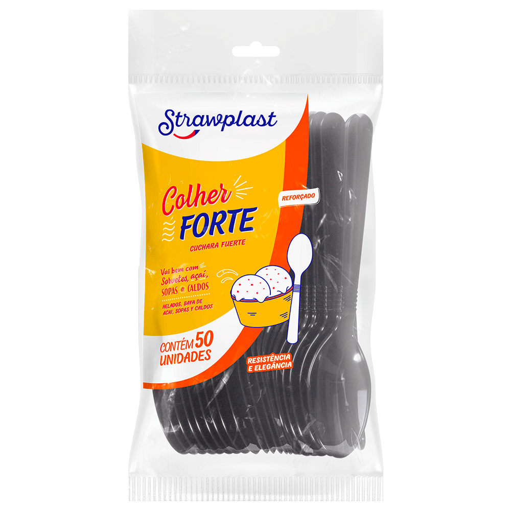 A Colher Forte Strawplast é fabricada com PS (Poliestireno)