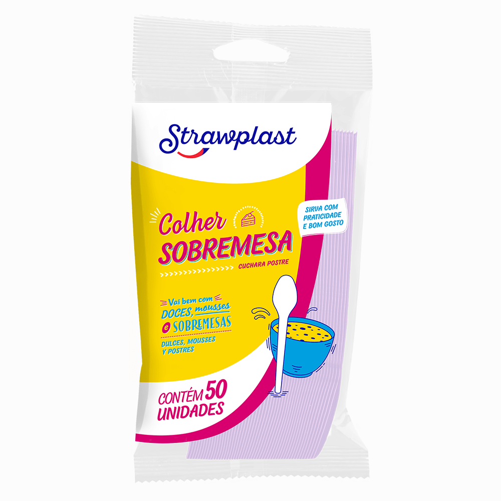 A Colher Sobremesa Candy é fabricada com PS (Poliestireno)