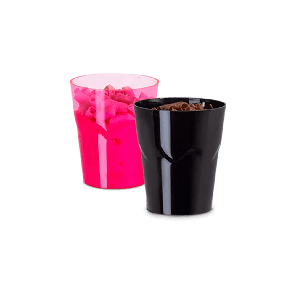 O Copo 25mL Mini Doce Strawplast é fabricado com PS (Poliestireno)
