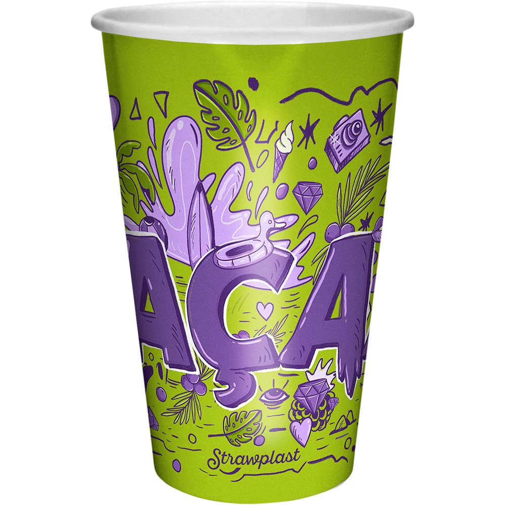 O Copo de Papel Açaí 550mL Strawplast tem uma estampa exclusiva que é a cara do Açaí, a cara do Brasil! Com volume de 550mL, ideal para servir uma porção grande! Com revestimento interno o Copo de Papel Strawplast não transpira e não amolece na hora servir o açaí gelado. Com os utensílios corretos para servir o seu açaí de forma diferenciada! Por isso, aposte na Linha Açaí Strawplast. O açaí já faz parte do dia a dia dos brasileiros. Leva sabor, saúde e energia para encarar os desafios. Isso que é potência! Linha Açaí, a cara do Brasil, a cara da Strawplast!
