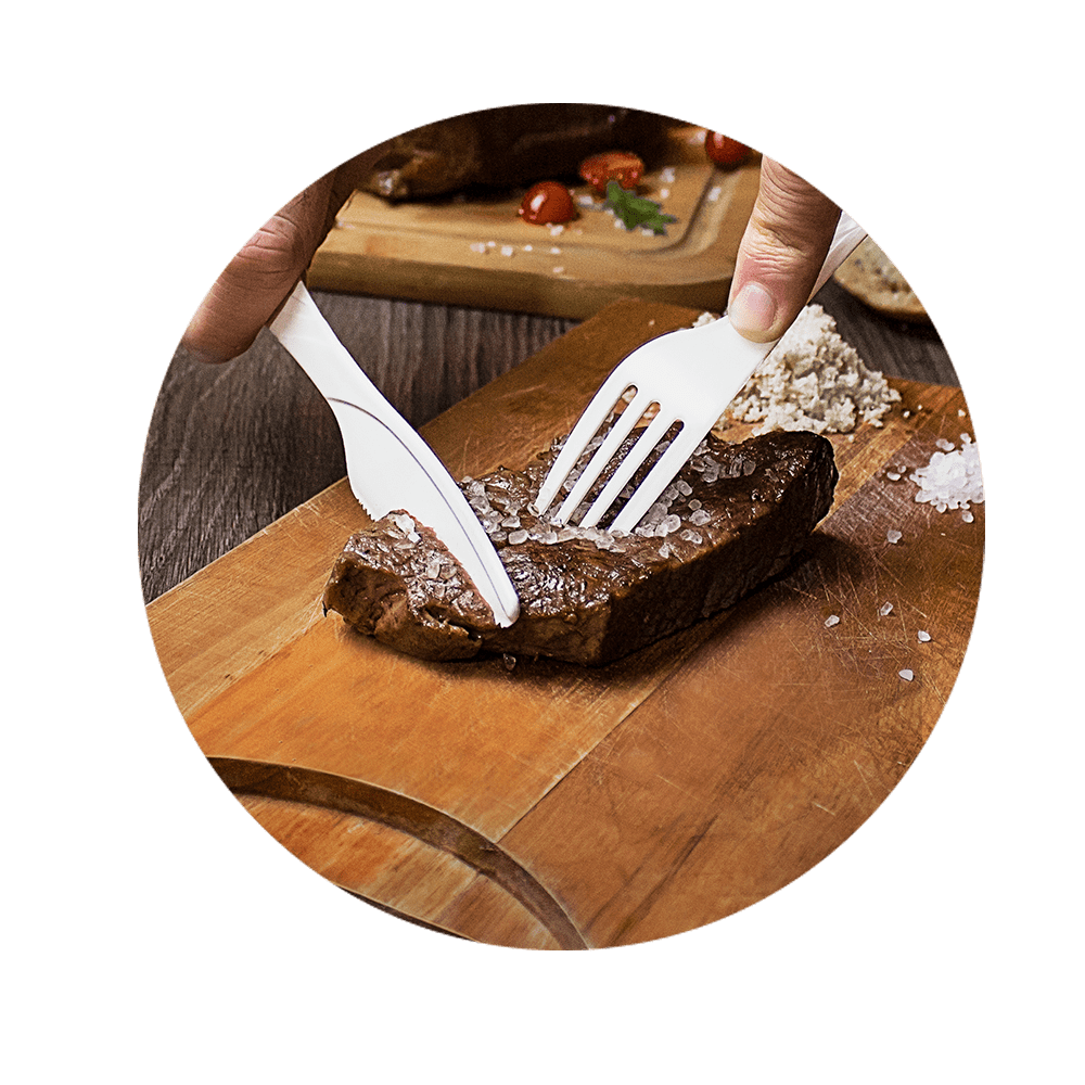 A Faca Extra Forte Churrasco Strawplast é fabricada com PS (Poliestireno)