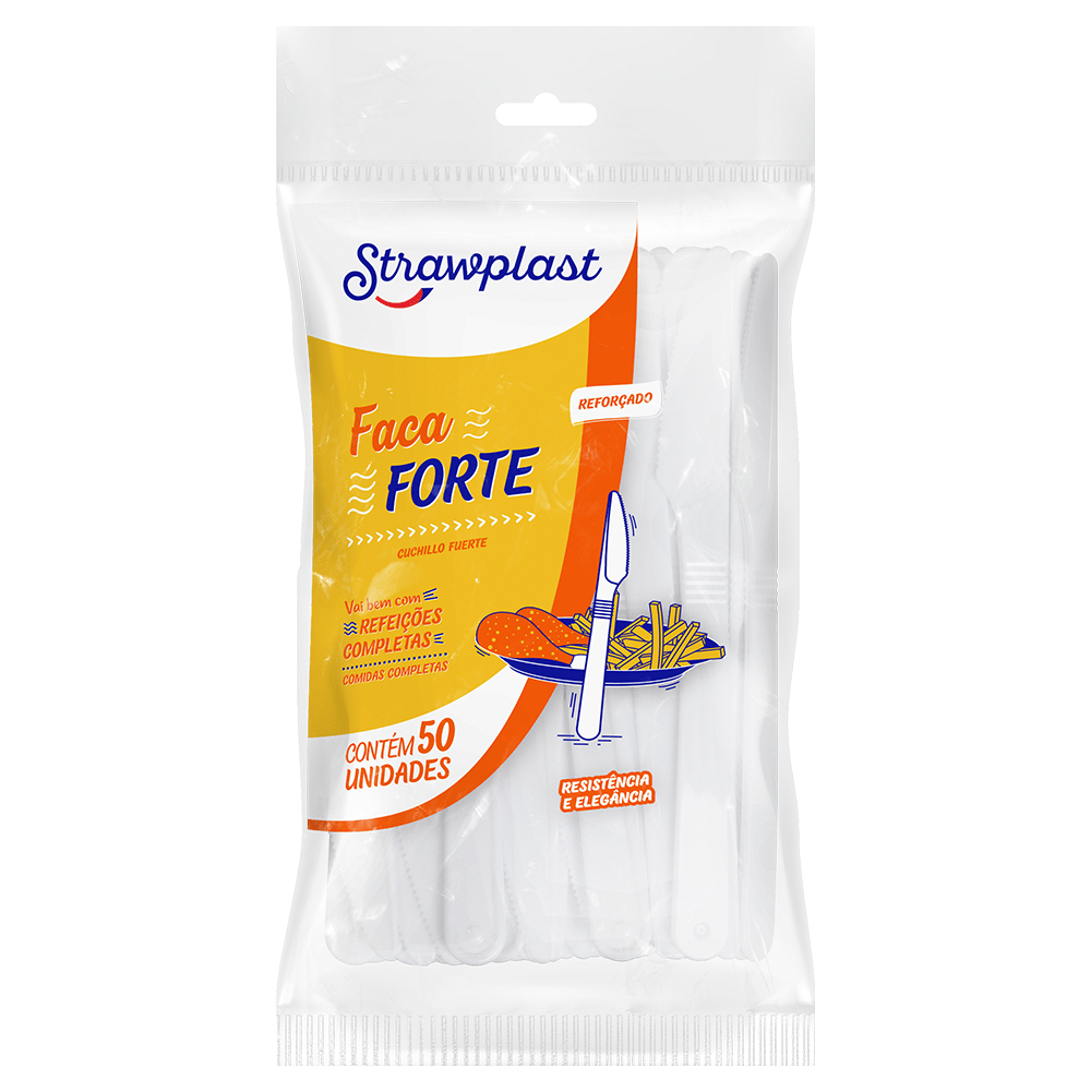 A Faca Forte Refeição Strawplast é fabricada com PS (Poliestireno)