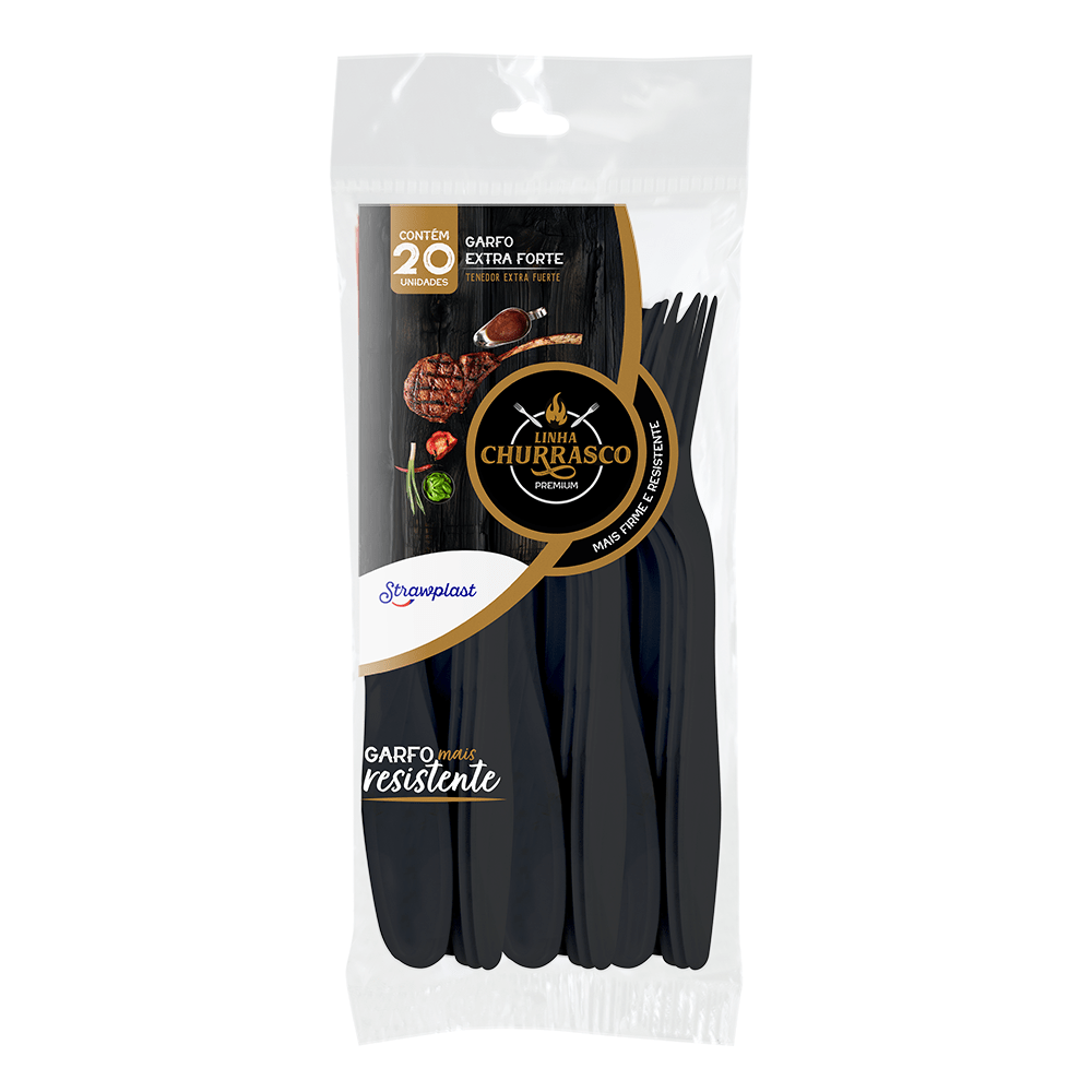 O Garfo Extra Forte Churrasco Strawplast é fabricado com PS (Poliestireno)