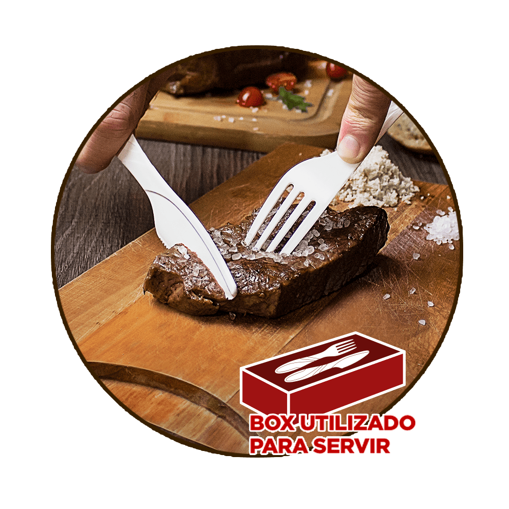 O kit box garfo e faca extra forte churrasco Strawplast é fabricado com PS (Poliestireno)