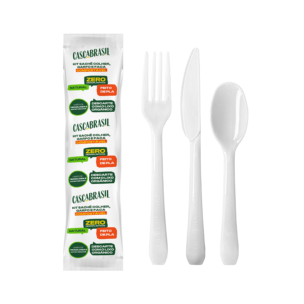 Conteúdo da embalagem: 200 Kit’s Sachê (cada sachê contém 1 Garfo, 1 Faca e 1 Colher) embalados individualmente em sachê de papel.