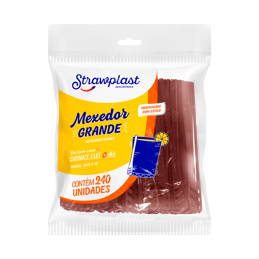 O mexedor grande Strawplast é perfeito para misturar bebidas com praticidade.