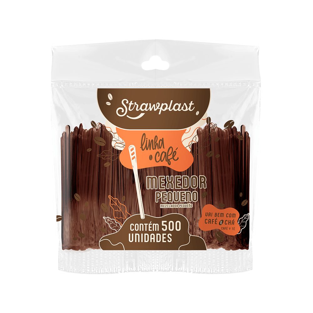 O mexedor pequeno Strawplast é fabricado com PS (Poliestireno)
