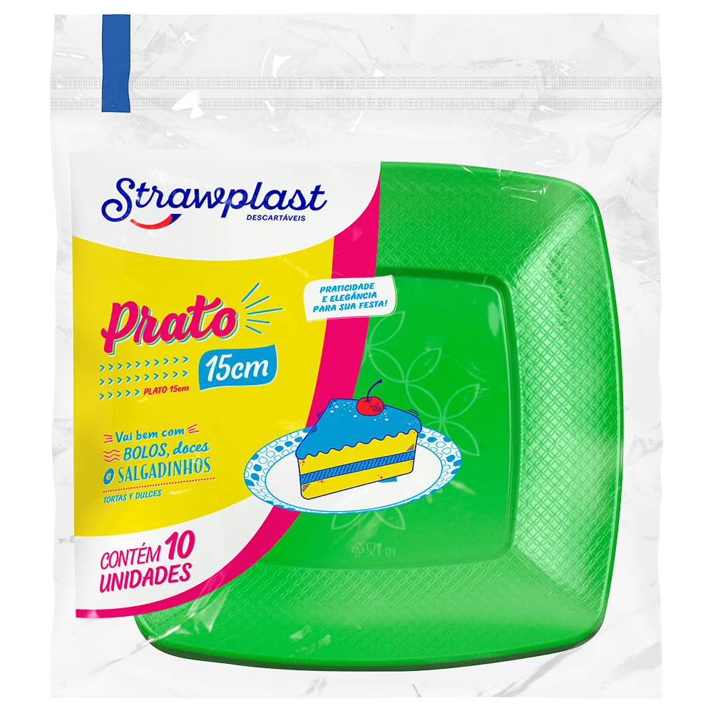O prato festa Strawplast é fabricado com PS (Poliestireno)