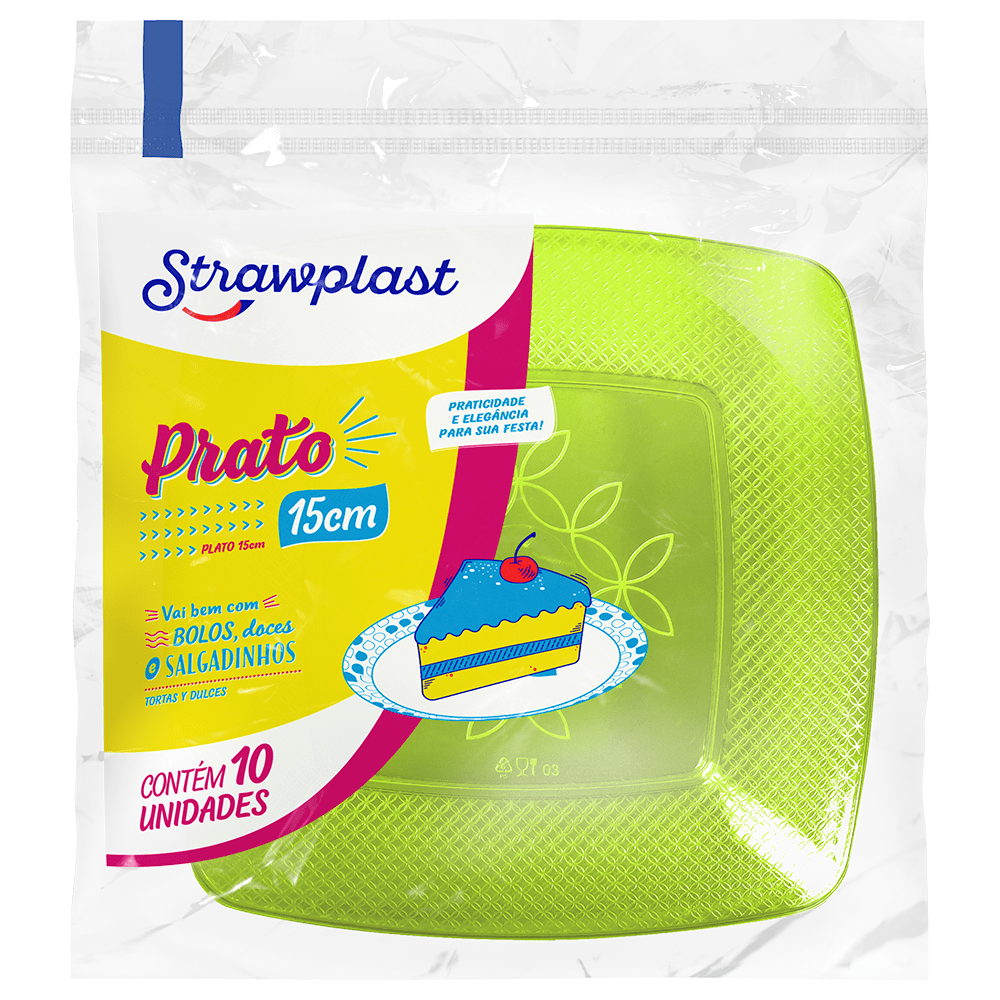 O prato festa Strawplast é fabricado com PS (Poliestireno)