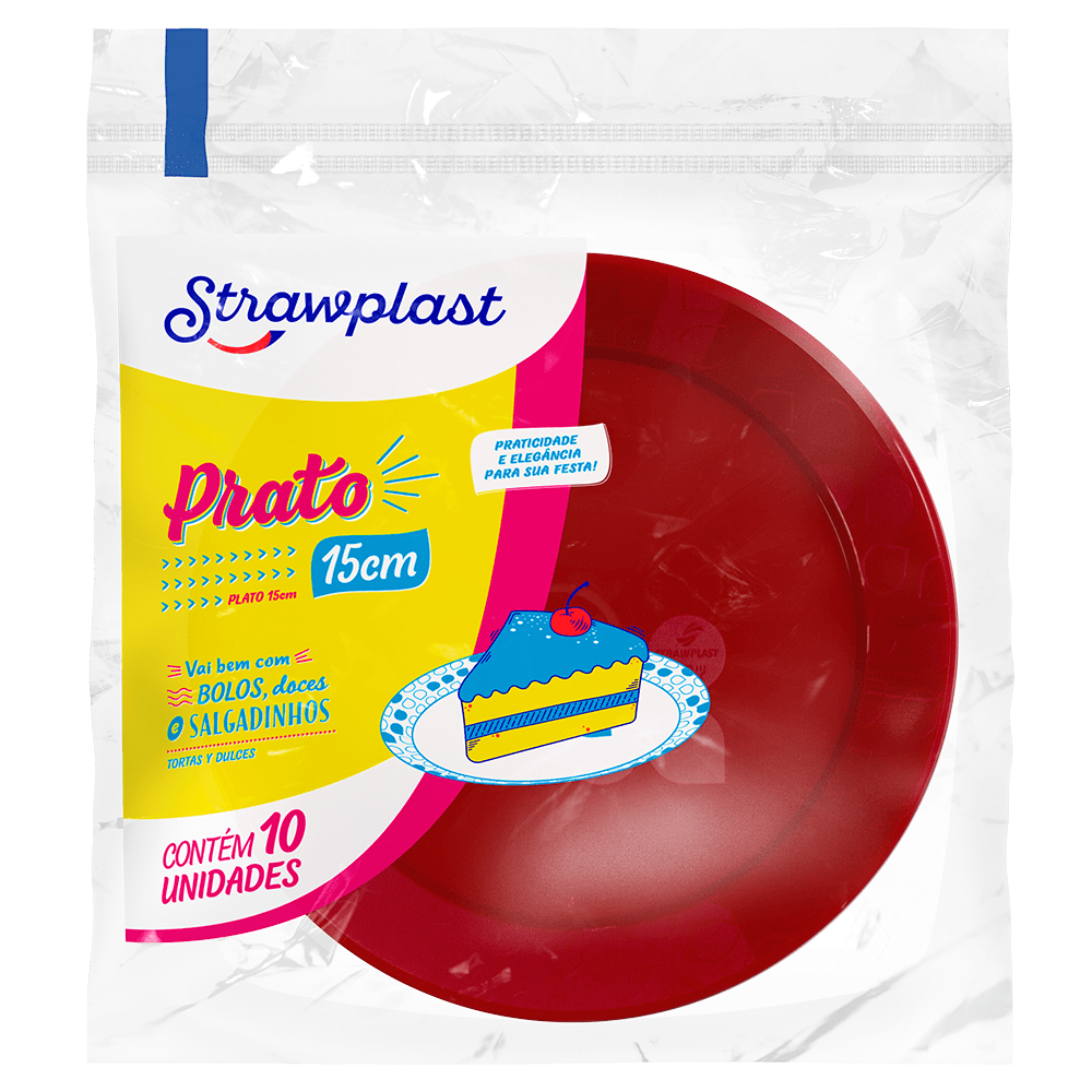 O prato festa Strawplast é fabricado com PS (Poliestireno)