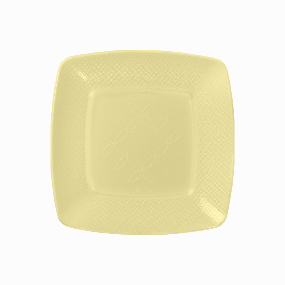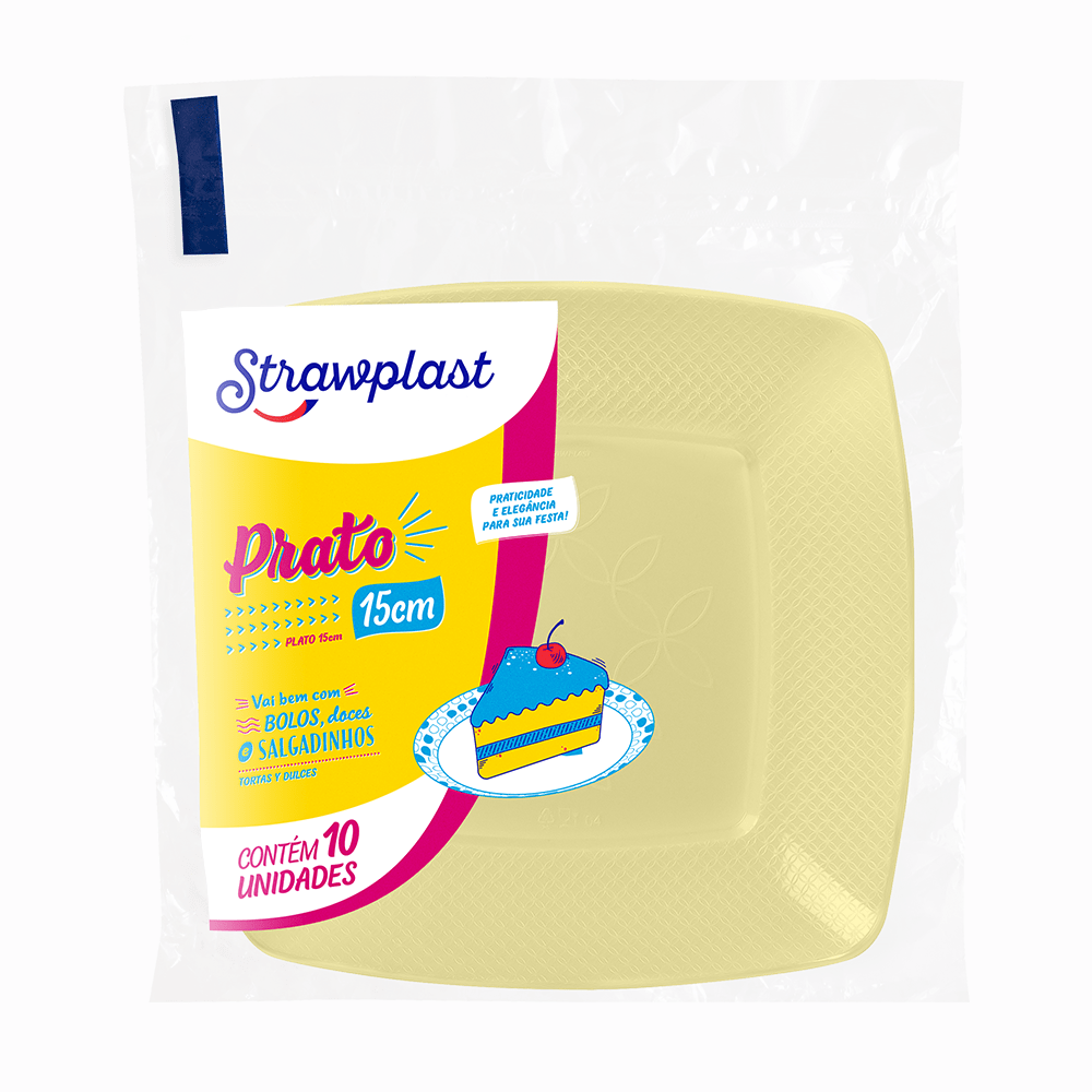 O prato festa Candy é fabricado com PS (Poliestireno)