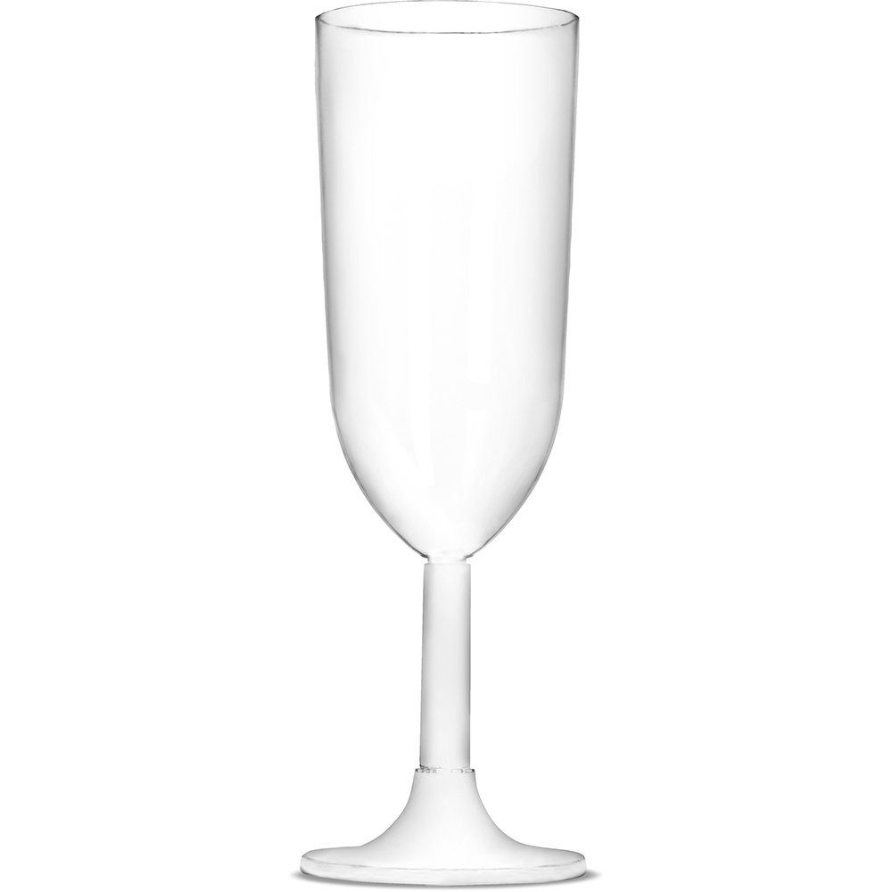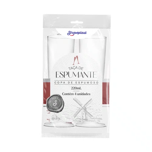 A taça 220ml Champagne Strawplast é fabricada com PS (Poliestireno)